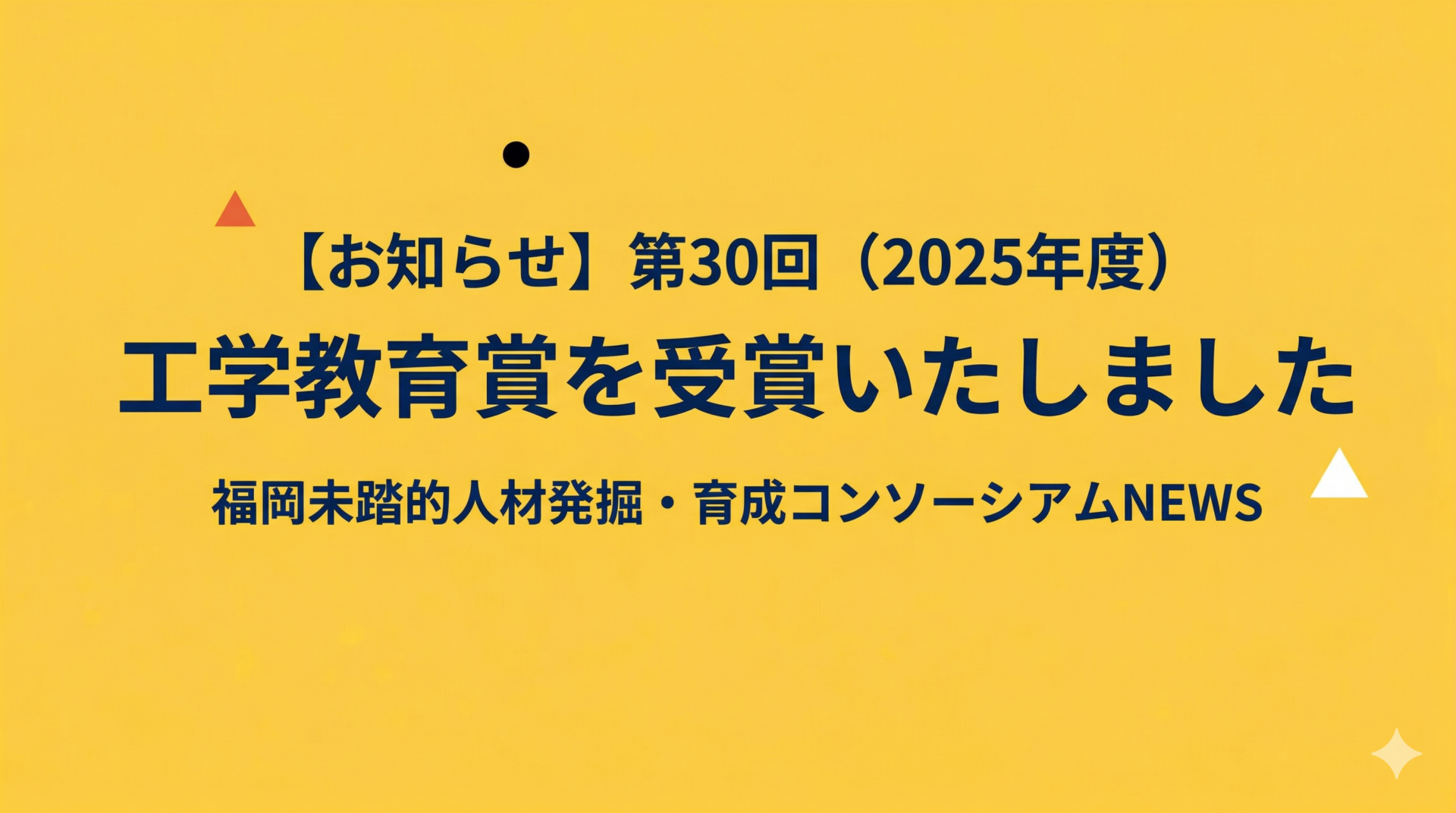 このたび、福岡未踏的人材発掘・育成コンソーシアム(以下、福岡未踏)の活動が、公益社団法人日本工学教育協会(JSEE)の主催する「第30回(2025年度)工学教育賞(業績部門)」を受賞いたしましたことをお知らせいたします。